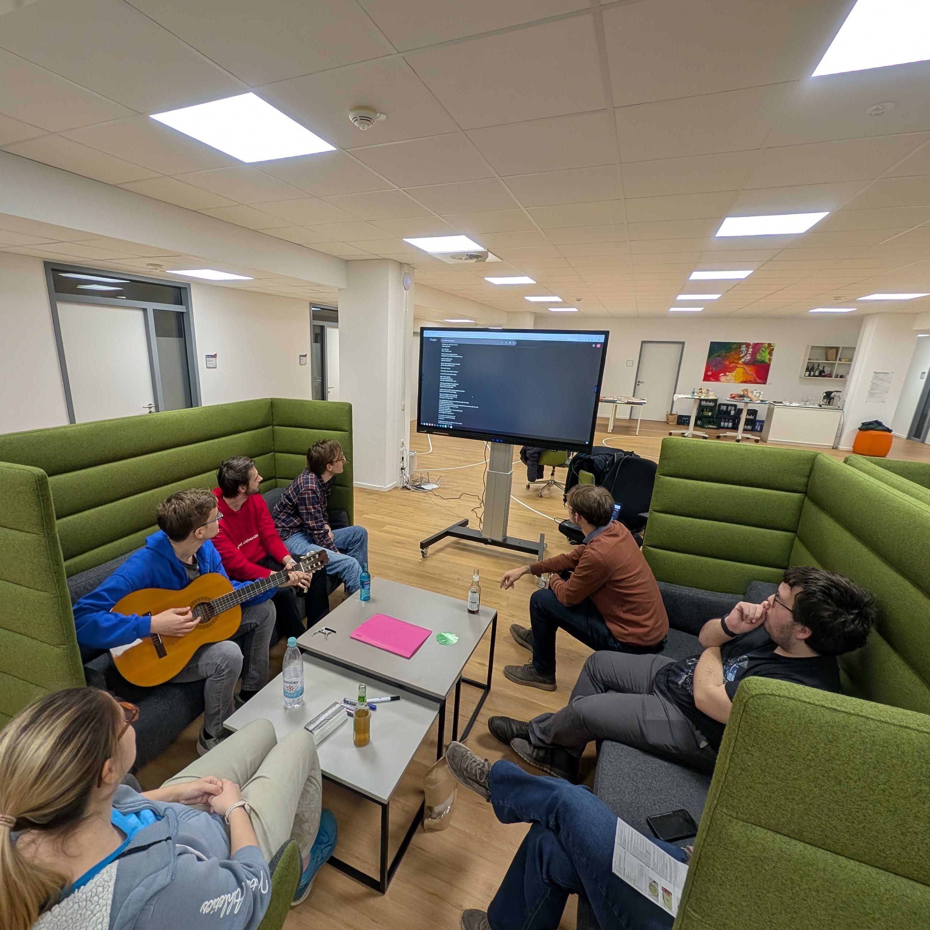 Eline Bovy (left) and Maris Galesloot (right) presenting their work at a visit to Dave Parker and Nick Hawes in Oxford.